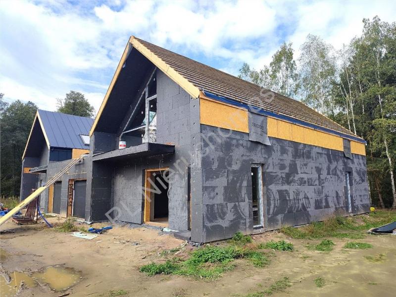 Nowoczesne bliźniaki łączone garażem, las