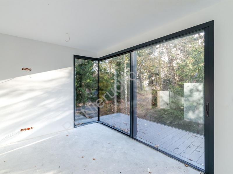 przeszklony salon z wyjściem na zielony ogród